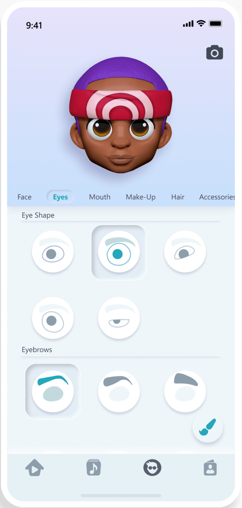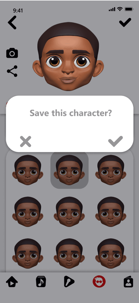 Customisation screen was initially very complex, with endless categories and option for customisation. In the end we had to simplify. Even so, I had to create custom icons for all customisation choices. When organising them, I went with something very close to what Apple did for its Memoji feature, and in user tests, it was the simplest to navigate.