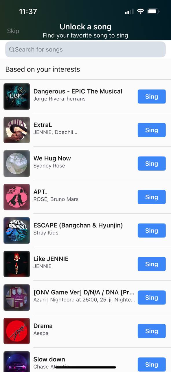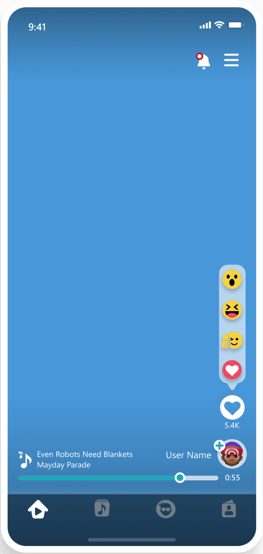 SingHeads was an augmented reality singing app aimed at kids, combining face-tracked 3D avatars with an interactive karaoke experience. Users could sing along with lyrics and real-time pitch tracking, while earning points, and saving or sharing videos on a built-in social media feed.