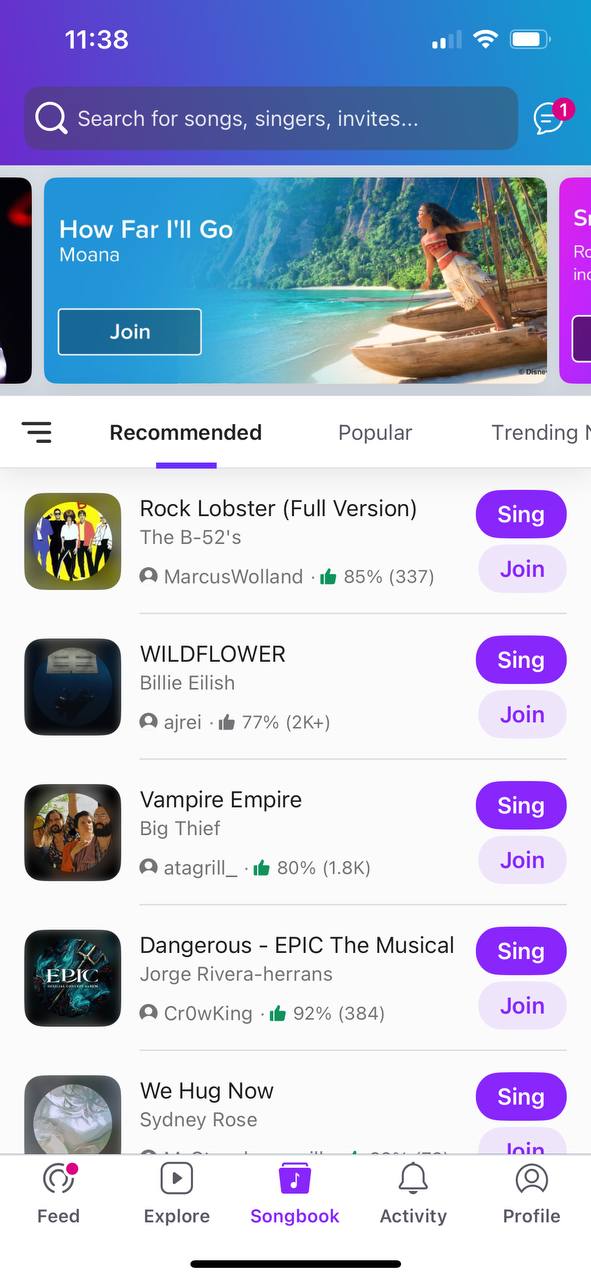 Our direct competitor was an app called Smule, a social media singing platform with a large song library, strong community and features like duets and group songs. But their target demographic was much older and offered no privacy options.